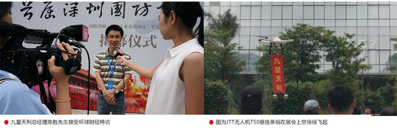 深圳市特種產(chǎn)業(yè)協(xié)會秘書長趙熙在采訪中表示,今年是中國人民抗日戰(zhàn)爭暨世界反法西斯戰(zhàn)爭勝利70周年。為了紀念70年前那場艱苦卓絕的民族抗戰(zhàn),銘記歷史、緬懷先烈、珍愛和平、開創(chuàng)未來,深圳市特種產(chǎn)業(yè)協(xié)會在深圳市國防科技工業(yè)辦公室、南山區(qū)政府的悉心指導(dǎo)以及社會各界的關(guān)懷下,組織深圳軍工相關(guān)企業(yè),隆重舉辦“首屆深圳國防書畫展”。深圳九星天利科技有限公司作為軍工企業(yè)的無人機科技行業(yè)的佼佼者,也被邀請為此次展會的特約嘉賓。