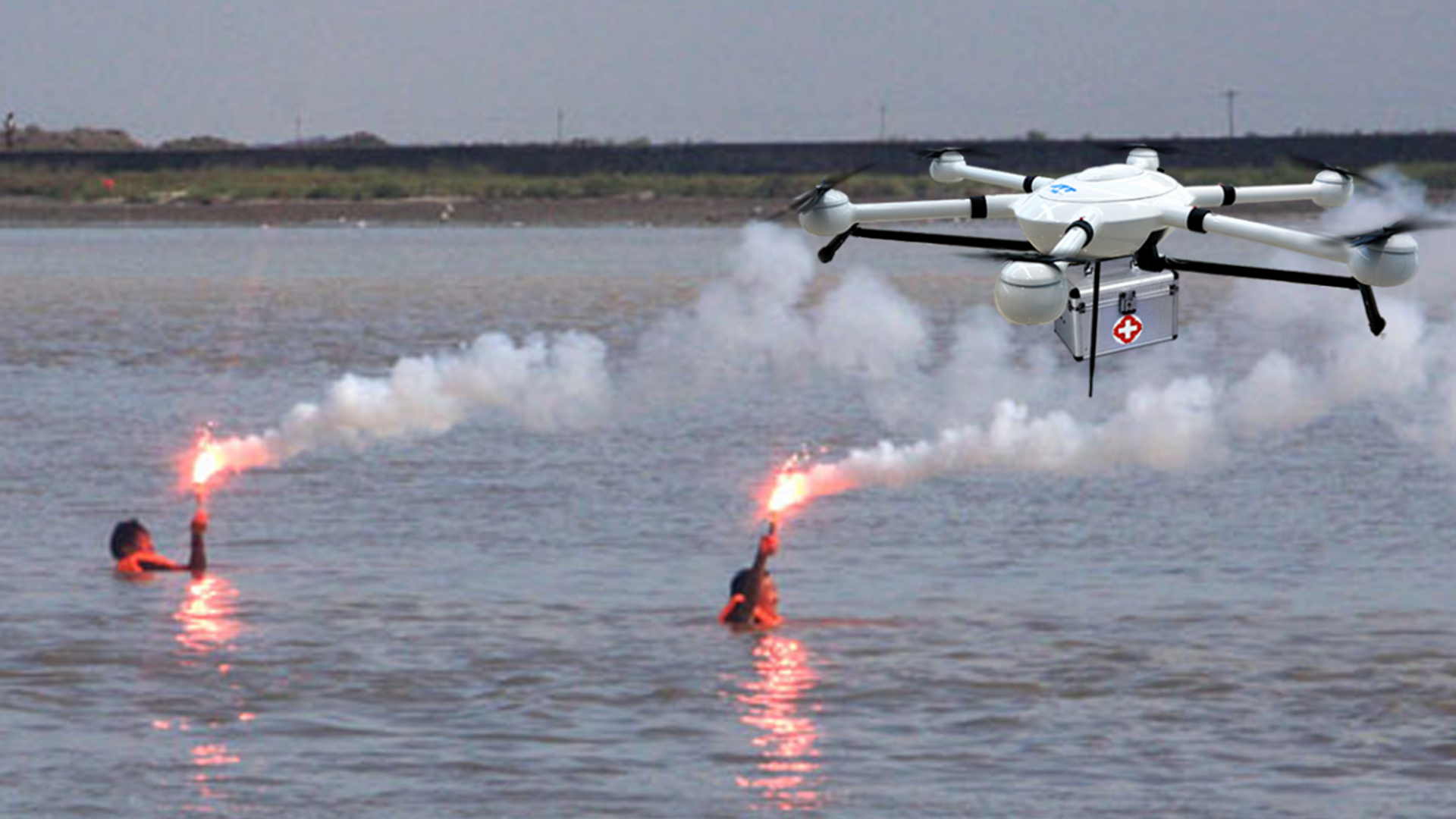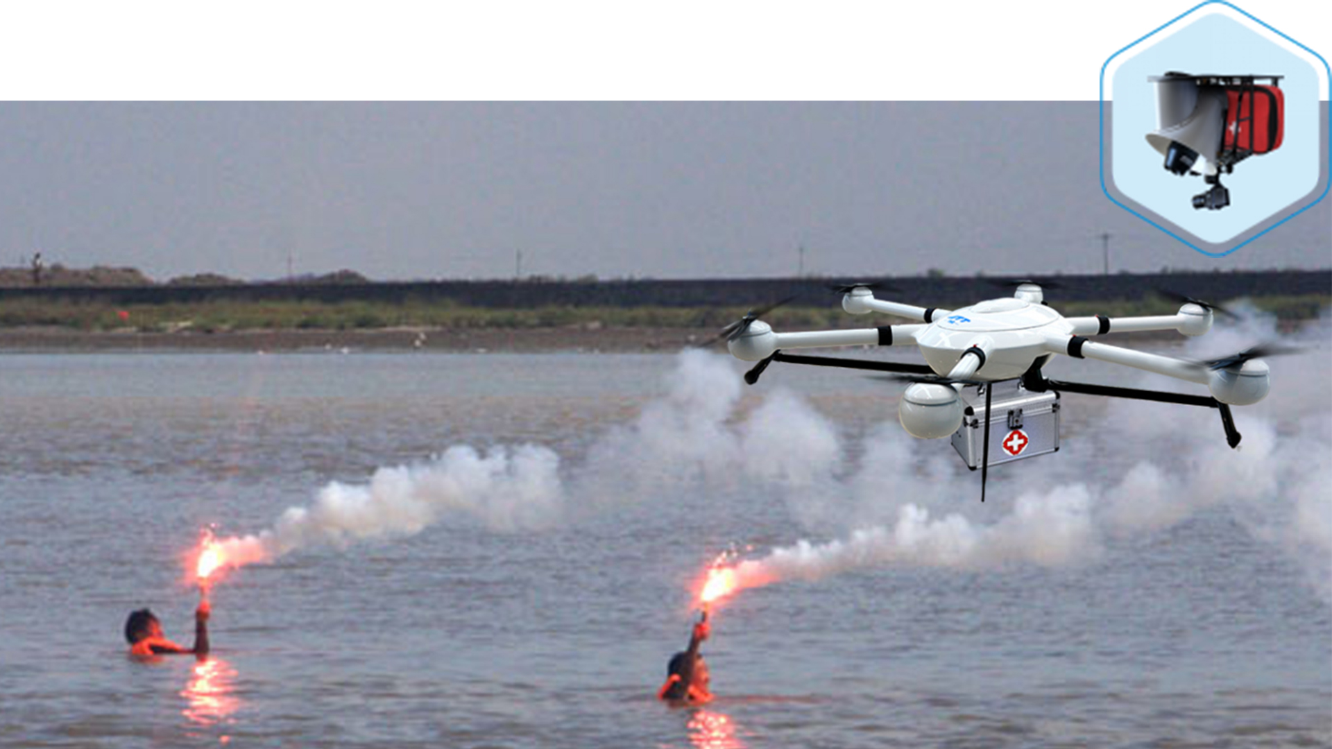 當在海上遇到突發狀況時,無人機可搭載四合一掛載在事發高空盤旋監控,實時傳送圖像信息至指揮中心,指揮中心可以對現場進行指揮救援行動,并且可以空頭一系列救援物品給需要救助的人員。還可以通過四合一種的喇叭對現場需要救助人員進行疏導和安慰。