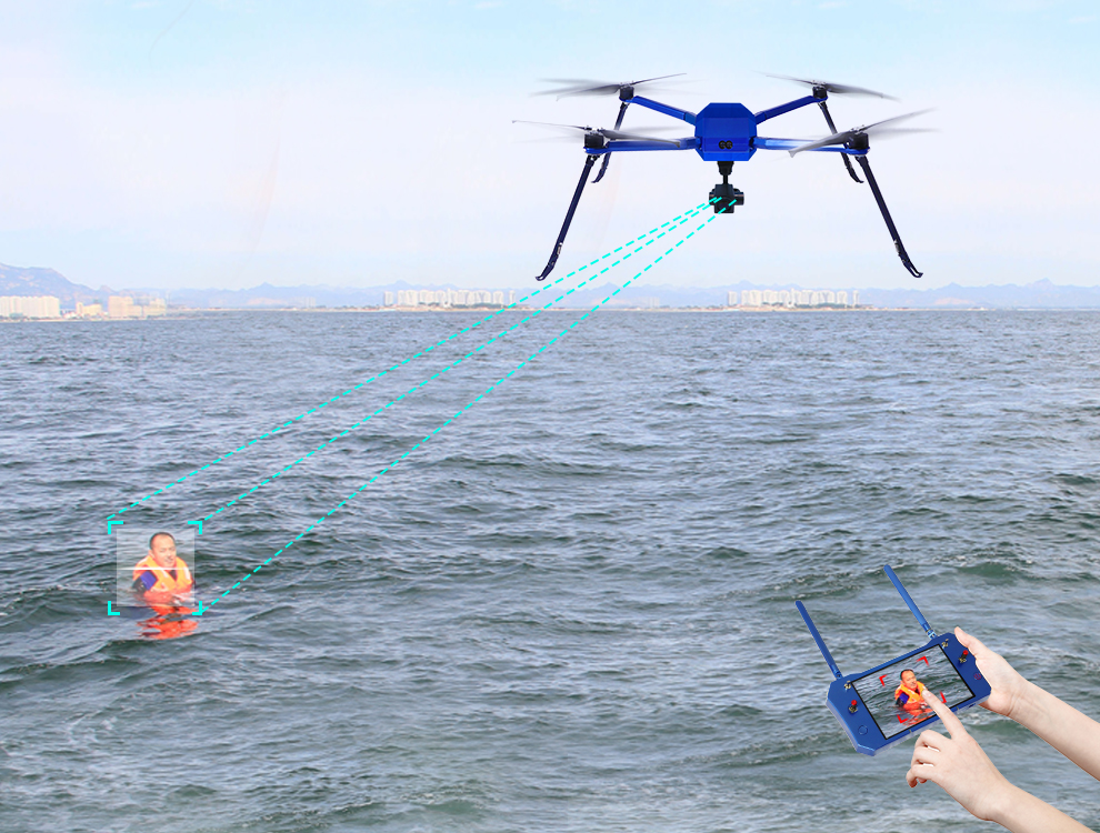 為了更全面的保護(hù)環(huán)境,靠近海島的區(qū)域,往往都不會(huì)有太全面的監(jiān)視,有許多游客包括小孩,有的甚至脫掉救生衣,直接去體驗(yàn)大自然的美好。然而,意外經(jīng)常會(huì)發(fā)生。在深圳某地,有個(gè)小孩為了證明自己會(huì)游泳,腳被海底下大卷的海草給絆住了,一時(shí)間因?yàn)樾幕牛眢w在大海上失衡了,隨即危險(xiǎn)襲來(lái)。智璟科技C85無(wú)人機(jī)在海島上巡航時(shí)候,就發(fā)現(xiàn)了水面異樣,隨后快速飛去異樣現(xiàn)場(chǎng)觀看,通過(guò)人臉識(shí)別鎖定人臉后,啟用自動(dòng)跟隨,精準(zhǔn)定位到孩子的具體位置,當(dāng)?shù)孛嬲究吹骄唧w位置后,救援人員隨即派出水上救援機(jī)器人前去營(yíng)救,小孩抓到機(jī)器人后便恢復(fù)了平衡(機(jī)器人擁有75kg的浮力,相當(dāng)于四個(gè)傳統(tǒng)泳圈),之后救援人員開(kāi)啟一鍵自動(dòng)返航,把小孩安全帶回岸上。