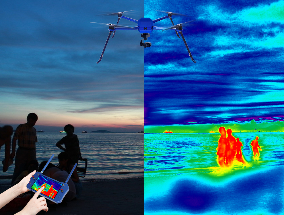 在夜晚的巡邏當(dāng)中,搭載的紅外熱成像儀,通過(guò)顏色、形狀、動(dòng)作辨別人體的位置和狀態(tài),協(xié)助分析是否處于危險(xiǎn)狀態(tài)當(dāng)中。