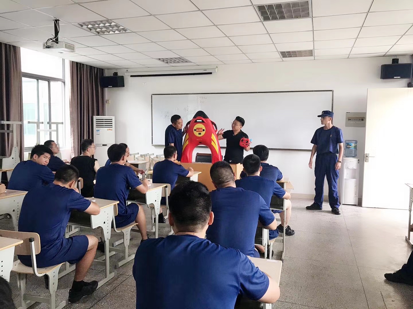 R1水上救援機器人作為搶險救援演習項目的主力軍,參與到項目當中。而整個演習由江蘇服務中心、總部研發人員等組成救援小組執行。