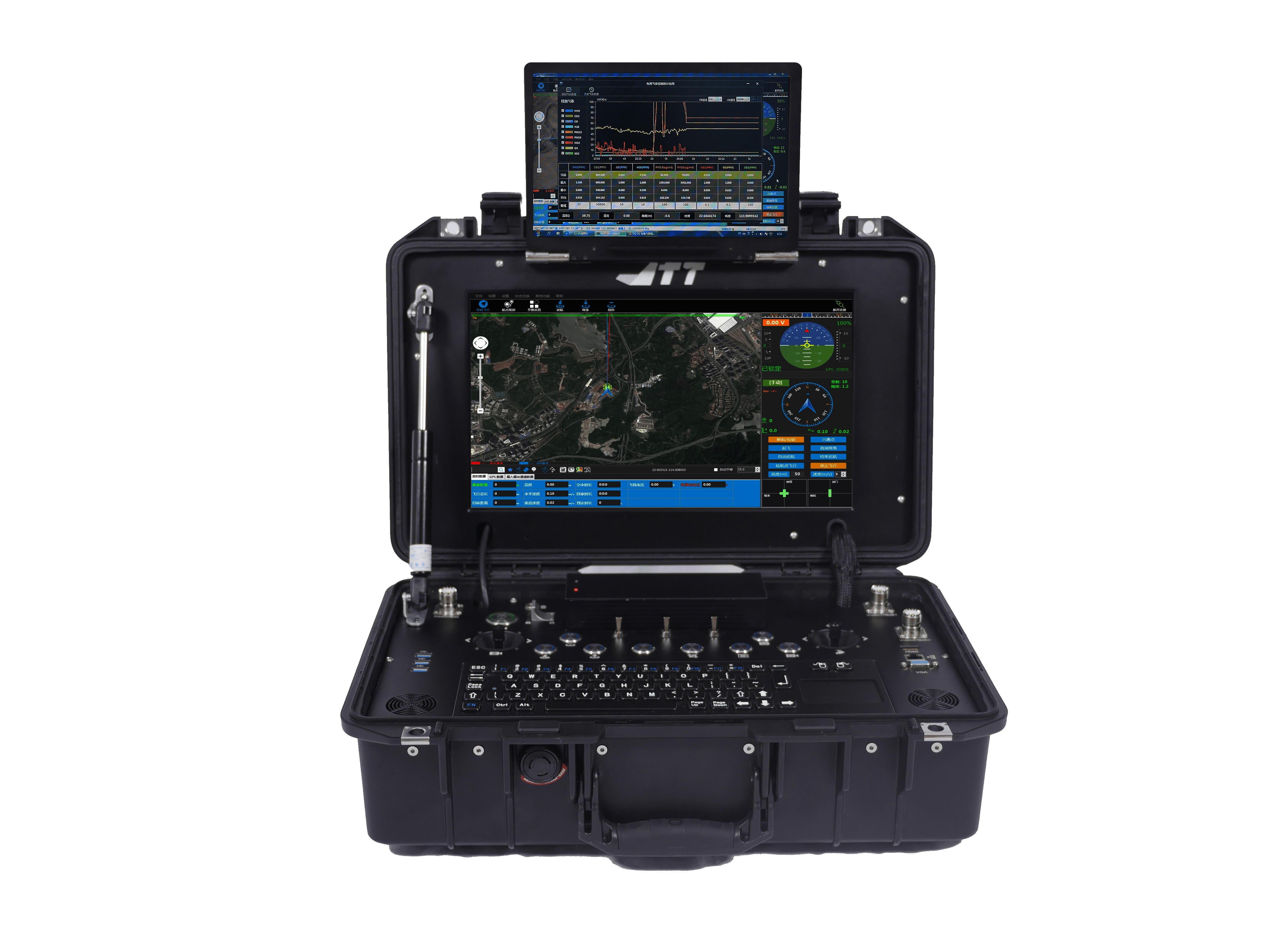 ● 地面站系統使用Intel i5處理器,性能強大,操作流程; ● 高亮LED顯示屏,低反射率,陽光下可視,同時數據顯示屏可根據實際視覺需求運動; ● 工業級觸摸鍵盤,操作方便,堅實可靠; ● 內置900MHz數傳電臺,自動跳頻,規避干擾; ● 雙屏設計,高清圖像實時顯示在15寸高亮LED顯示屏中,同時可觀察飛行數據,無需切換,規避安全風險; ● 地面站面板一鍵式操作設計,方便快捷; ● 地面站支持低電語音提示; ● 地面站可通過搖桿及界面按鍵,對飛行掛載進行功能控制; |