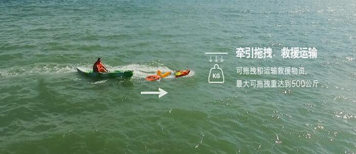 R1除了救人,還能拖拽船只,運輸救援物資等,載重可達500KG,小小身體,帶來更多可能性。