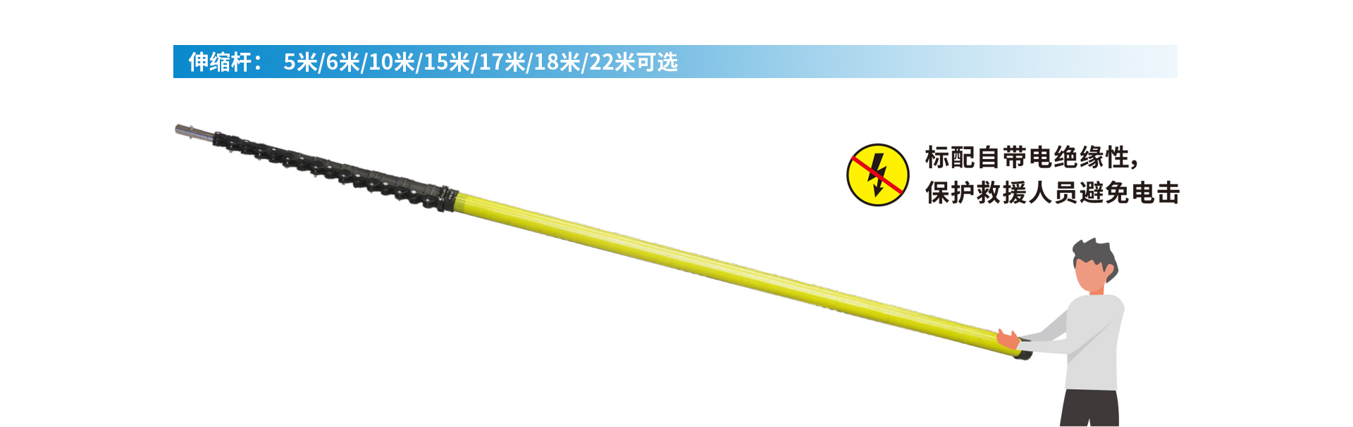 可以在任意水面上進行5米;6米;10米;15米;17米;18米;22米,快速救援有意識或者無意識人或者動物,減少人員傷亡的最有效工具,也大大降低了救援人員傷亡風險,提高救援效率,多功能救援頭可以根據(jù)救援環(huán)境,任意快速調(diào)換救援頭,達到最佳的救援效果;其中炭纖維伸縮桿在救援人員手握部位采用具有電絕緣性的玻璃鋼材質(zhì),電壓等級≥9.5KV,避免救援人員觸碰到高壓線等情況出現(xiàn)電擊,極大保障了救援人員的生命安全。
