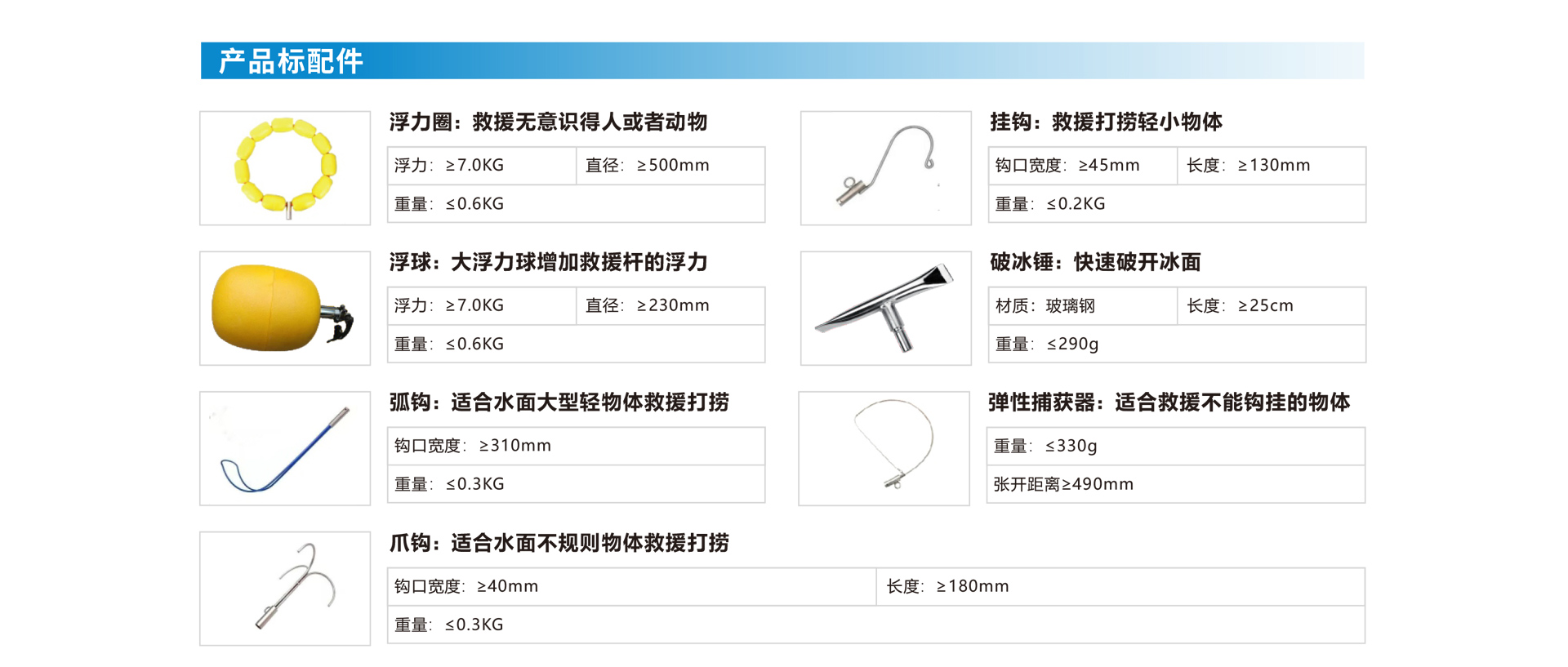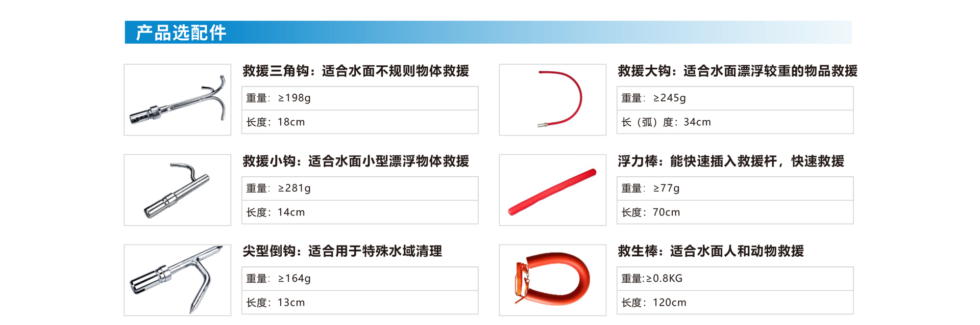 · 救援桿(18m):在岸上或船上開展遠距離安全施救,也可用來打撈漂浮物時使用