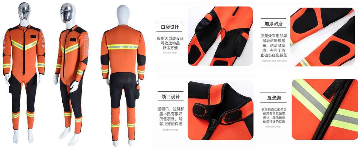 采用320D加粗3層防水透氣復合尼龍布,層壓復合面料技術,面料具有超輕、耐磨、抗切割、防水、透氣等功能,可安全可靠的應用于寒冷水域救援工作。